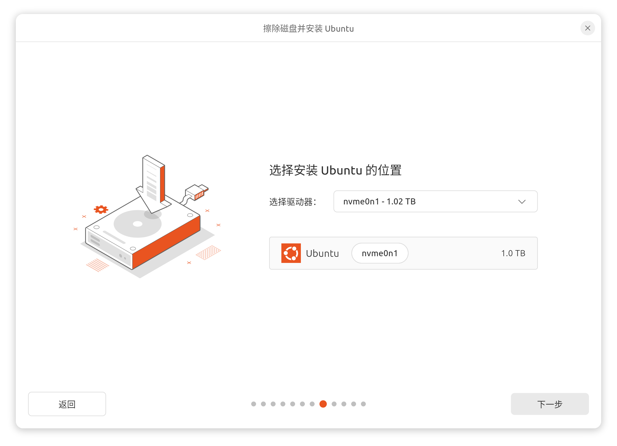 还有一种是全盘安装,如果你只有一块硬盘这会删除你的windows系统并且格式化所有数据(假如你还有一块空硬盘的话可以安装到空硬盘上面);