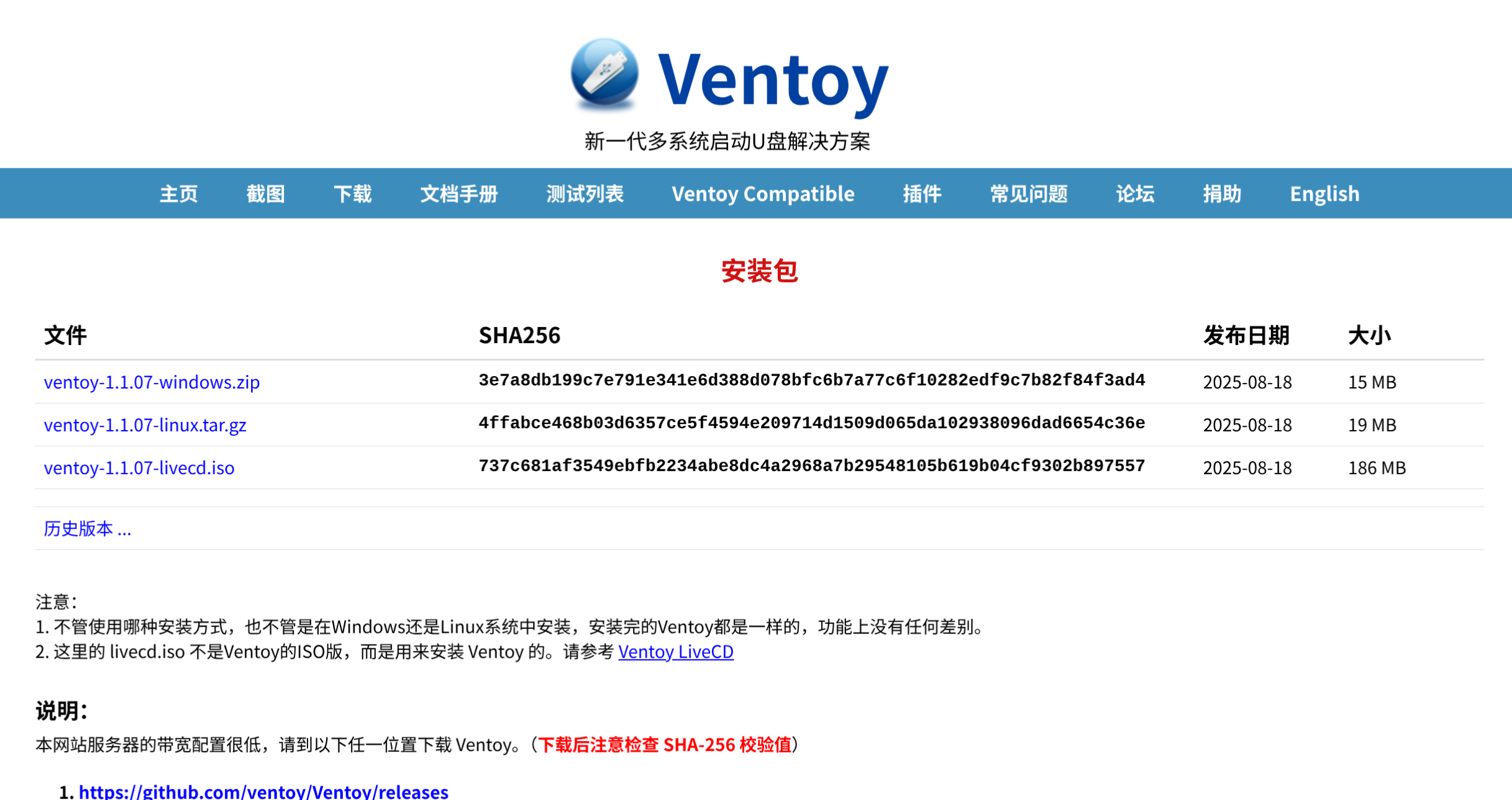 ventoy下载页面